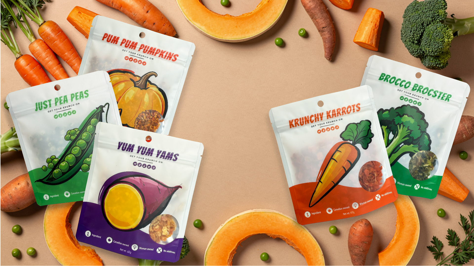 Human grade air dried vegetable snacks for all pets.